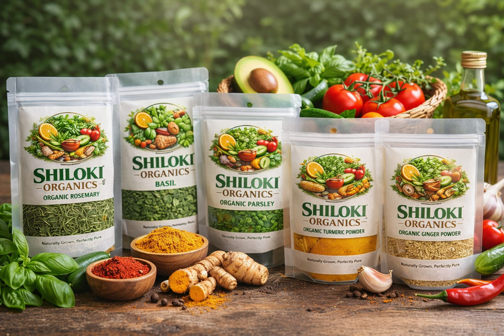 aroma and colour of food and drinks.At Shiloki Organics, we specialise in processing and packaging of natural organic herbs and spices,
